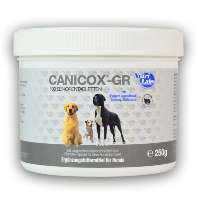 Canicox®-GR ist ein Ergänzungsfuttermittel für alternde Hunde, welches die Organe und den Stoffwechsel unterstützt und wiederaufbaut. Das Produkt wurde gezielt formuliert, um den speziellen Anforderungen von Hunden im Alter gerecht zu werden. Durch kontinuierliche Ergänzung der Nahrung können der Gelenkstoffwechsel, die Gehirn- und Gedächtnisleistung und die Funktion von Herz- und Skelettmuskulatur optimal unterstützt werden.
