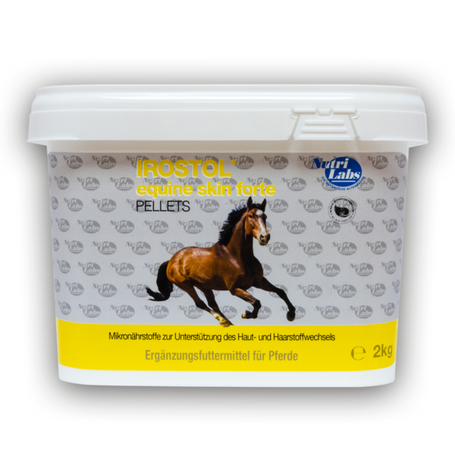 In Zeiten hoher Beanspruchung z.B. beim Fellwechsel, zur Mückenzeit oder in den heißen Sommermonaten ist die Haut und das Fell von Pferden besonders hohen Belastungen ausgesetzt. Mit einem schlechten Hautbild geht meist ein schlechtes, stumpfes und struppiges Fell einher. Irostol® equine skin forte unterstützt den Haut- und Haarstoffwechsel des Pferdes (auch vorbeugend) diesen Belastungen standzuhalten und sorgt darüber hinaus für ein wunderschönes Fell.