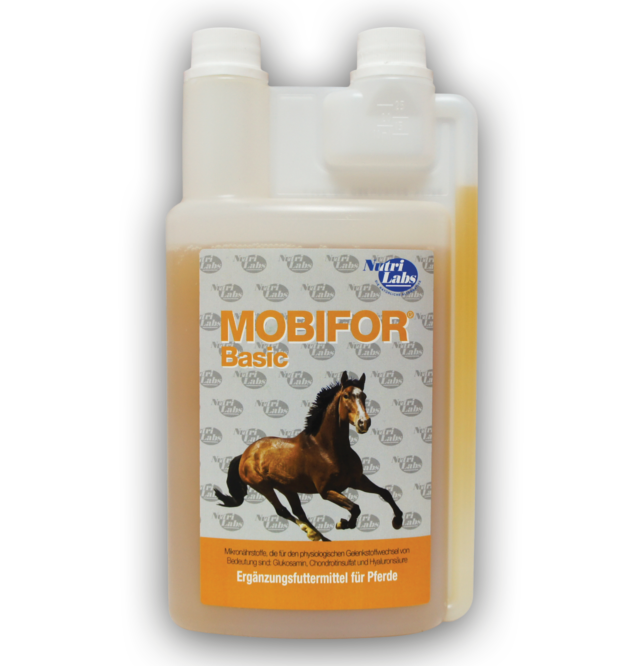 Die Verabreichung von Nährstoffen für den Gelenkstoffwechsel ist für Pferde aufgrund der hohen Anforderungen an ihren Bewegungsapparat besonders wichtig: Glykosaminoglykane, insbesondere Glukosamin sowie Chondroitin und Hyaluronsäure. Diese in Mobifor® Basic enthaltenen Stoffe bilden eine ausgewogene Unterstützung für den Gelenkstoffwechsel bei Pferden. Mobifor® Basic ist eine Formel, die für den durchschnittlichen Bedarf von Freizeitpferden bei normaler bis starker Belastung abgestimmt ist. Mobifor® ist auch in den Varianten Mobifor® Ultra und Mobifor® High Performance sowie für alte Pferde als Mobifor®-GR erhältlich.