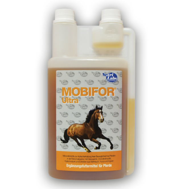 Mobifor® Ultra wurde für die Unterstützung der Regeneration von Pferden nach erfolgter Behandlung von Gelenksanomalien entwickelt. Es enthält neben Glukosamin und Chondroitin auch Hyaluronsäure. Diese wird aufgrund der Molekülgröße abgebaut und die dabei entstehenden Stoffwechselprozesse liefern Strukturelemente für die Knorpelregeneration.