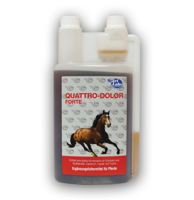 In vielen Fällen ist der Bewegungsapparat von Pferden überdurchschnittlicher Belastung ausgesetzt, z.B. Verschleißerscheinungen bei alten Tieren oder unregelmäßige Belastung von Freizeitpferden. Quattro-Dolor forte wurde speziell für die Versorgung solcher Tiere mit den für Reparation und Regeneration unterstützenden Mikronährstoffen entwickelt. Die Inhaltsstoffe dieser Pflanzen bzw. Extrakte bedeuten aber auch, dass dieses Produkt nicht bei Pferden eingesetzt werden darf, die aktiv am Turnier- und Rennsport teilnehmen. Quattro-Dolor forte wird daher am häufigsten bei Freizeitpferden und bei älteren Tieren eingesetzt.